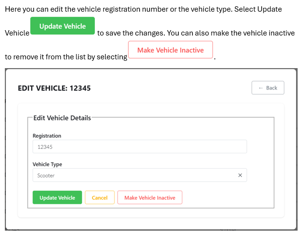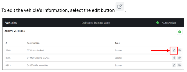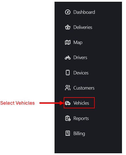 To view/ add or edit any vehicle details, select the menu and then select vehicles.